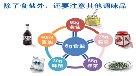 • 嚴格限制高鈉食品的攝入,每天的食鹽攝入量不超過5 克,除注意鹽和醬油限制外,應特別注意雞精、味精、飲料、罐頭等含鈉高的食品,盡量少吃或不吃加工食品。