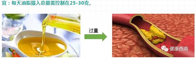 ➢植物油若攝入過多,可導致能量攝入超標,造成體內能量過剩,引起超重、血脂增高,甚至是動脈硬化。