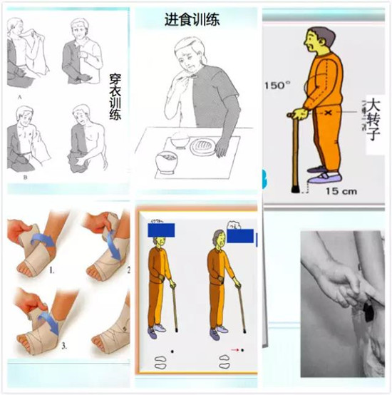 目標:通過學習使用“代償性技術”,如輪椅、拐杖等,充分發揮健側的潛能、盡量克服癱瘓帶來的影響、爭取最大限度的功能獨立性,提高患者日常生活活動能力。