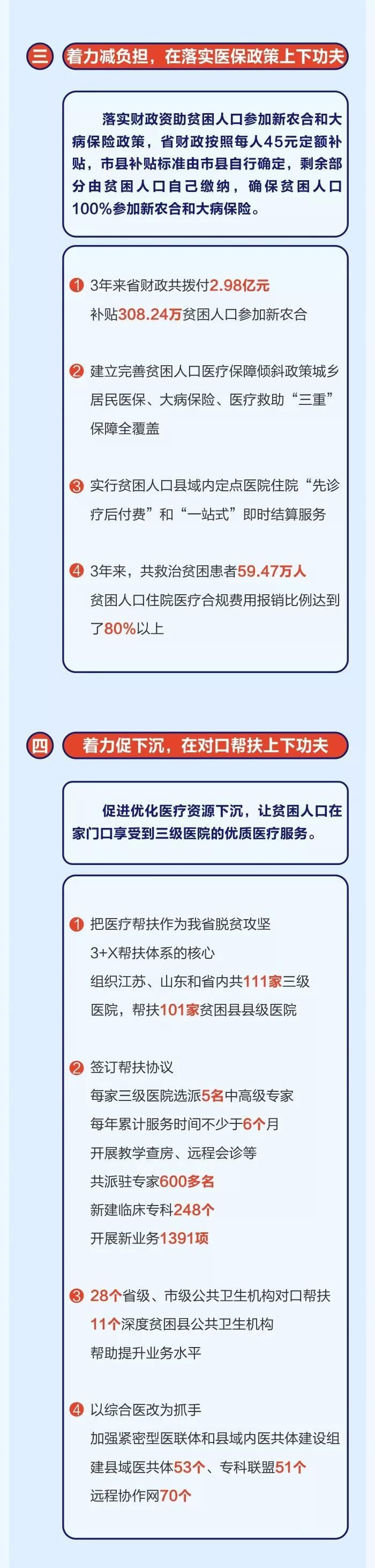 2017年以來,全省各級衛(wèi)生健康部門認真學習領會習近平總書記關于扶貧工作的重要論述,堅決貫徹落實中央和省委、省政府脫貧攻堅決策部署,把健康扶貧作為衛(wèi)生健康工作的重大政治任務、重點民生工程和重要發(fā)展機遇,以基本醫(yī)療有保障為目標,堅持“兩手抓”工作思路(一手抓精準施治減存量、一手抓疾病預防控增量),盡銳出戰(zhàn),攻堅克難,健康扶貧工作取得顯著成效,因病致貧戶較2016年減少13.83萬戶,為全省脫貧攻堅作出了重要貢獻。
