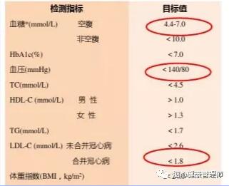 2型糖尿病理想的綜合控制目標,因患者的年齡、合并癥、并發(fā)癥等不同,有相應的目標值。