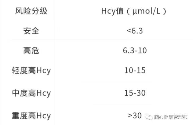 高Hcy是心腦血管疾病發(fā)生的獨立危險因素.Hcyd大于6.3μmol/L,進入心腦血管事件高危區(qū);因此人體Hcy值的安全范圍是Hcy<6.3μmol/L。同型半胱氨酸每增加5μmol/L,中風風險增加59%,缺血性心臟病風險增加33%。