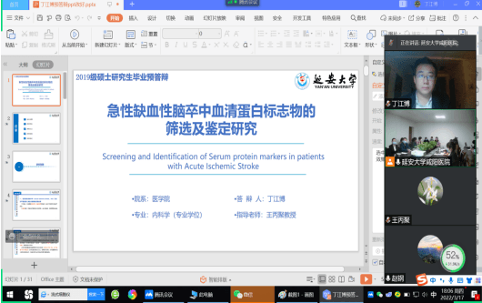 2022年3月16日-17日,延安大學(xué)咸陽(yáng)醫(yī)院2019級(jí)神經(jīng)外科、神經(jīng)內(nèi)科、內(nèi)科專業(yè)組碩士研究生畢業(yè)論文預(yù)答辯在科教部二樓會(huì)議室順利舉行。我院名譽(yù)院長(zhǎng)、西北大學(xué)醫(yī)學(xué)院院長(zhǎng)趙鋼教授,眉山心腦血管病醫(yī)院任付先教授,延安大學(xué)咸陽(yáng)醫(yī)院張海濤教授、姚曉峰教授、科研教學(xué)管理中心韓曉芳主任、王丙聚教授、慕廷民教授、張維副教授、郭愛紅副教授、賈建厚教授、陳萍副教授、王少君副教授、張桂芳副教授、左梅教授、廉秋芳副教授、王顯利副教授、劉增強(qiáng)副教授、全體碩士研究生及研究生管理科相關(guān)人員共30余人參加此次預(yù)答辯。本次預(yù)答辯由科研教學(xué)管理中心韓曉芳主任主持。