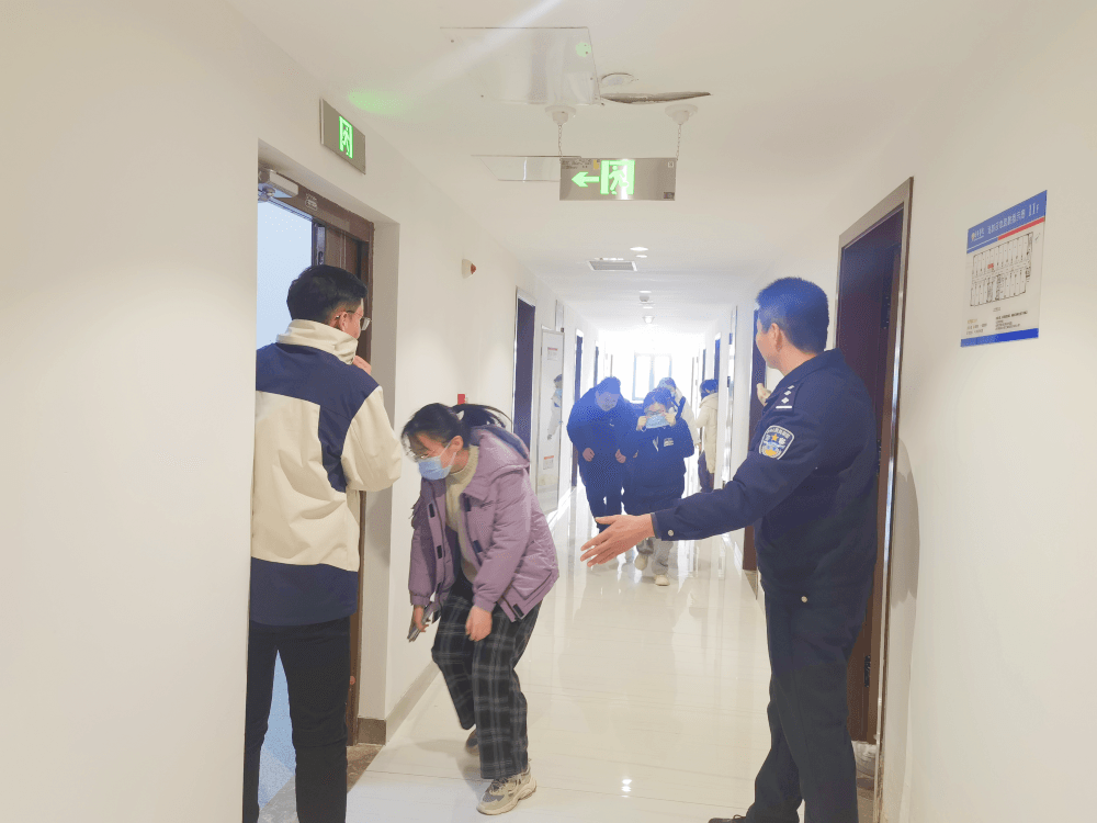 消防講座結(jié)束后,從發(fā)現(xiàn)火情、求救求助、疏散逃生等全過程進(jìn)行了演練,一陣急促的警報(bào)聲拉開了“宿舍消防安全疏散演練”活動(dòng)的帷幕,聽到警報(bào)聲,全員立即到達(dá)指定崗位,郭俊鵬科長、寇森隊(duì)長指導(dǎo)學(xué)生快速疏散,聽到指令后學(xué)生彎著腰、貓著步,捂住口鼻,沿著樓道快速前進(jìn),有序撤離到安全地帶,隨即清點(diǎn)人數(shù),層層向上匯報(bào)。